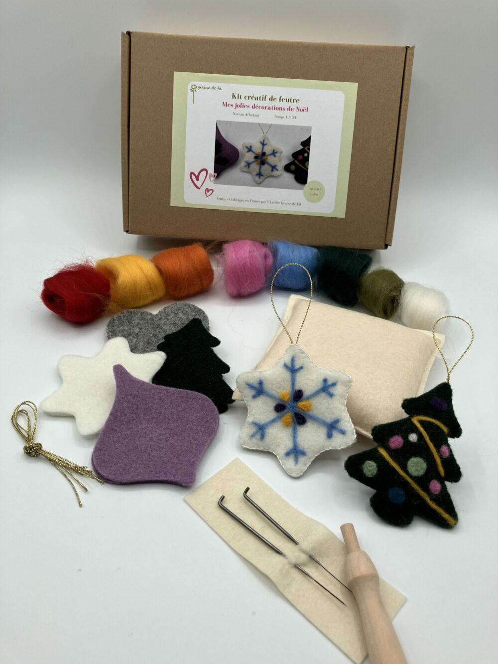 Notre kit de décorations en feutre à l’aiguille est également une merveilleuse idée cadeau : originale, fait main et créée avec soin, elles séduisent par leur charme unique et leur authenticité. À offrir ou à s’offrir, elles apportent une note artisanale et élégante à la magie de Noël.